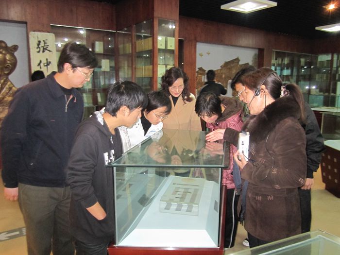 5月27日上午,南阳医专政教部杨金运、陈庆凯老师组织医技系部分学生参观仲景文化特藏馆。