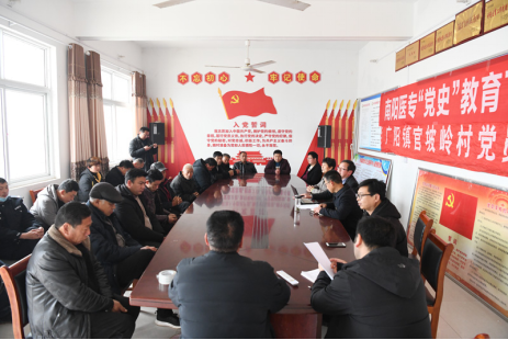 为深入贯彻落实习近平总书记关于党史学习教育的重要讲话精神,巩固脱贫攻坚成果,推进新时代乡村振兴,3月8日上午,南阳医专政教部在冯晓青主任带领下,到方城县官坡岭村为村民党员讲党史。讲座由政教部形势政策教研室主任刘永仓副教授主讲,官坡岭村全体党员干部、驻村干部以及贫困户代表等30多人参加了学习。
