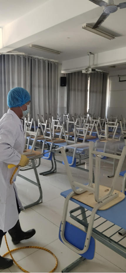 为了毫不放松落实学校疫情防控措施,加强公共区域清洁消毒,总务处4月28日组织职工43人对仲景西区、仲景东区及孔明校区248间教室、236间公厕进行84消毒液喷洒消毒,并对校内382处窨井、下水道,39处化粪池进行疏通、清运、消毒。