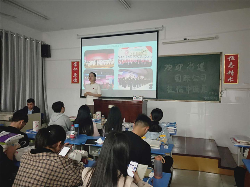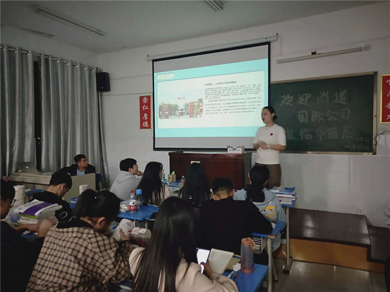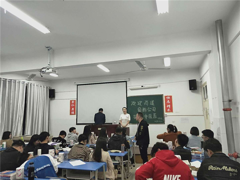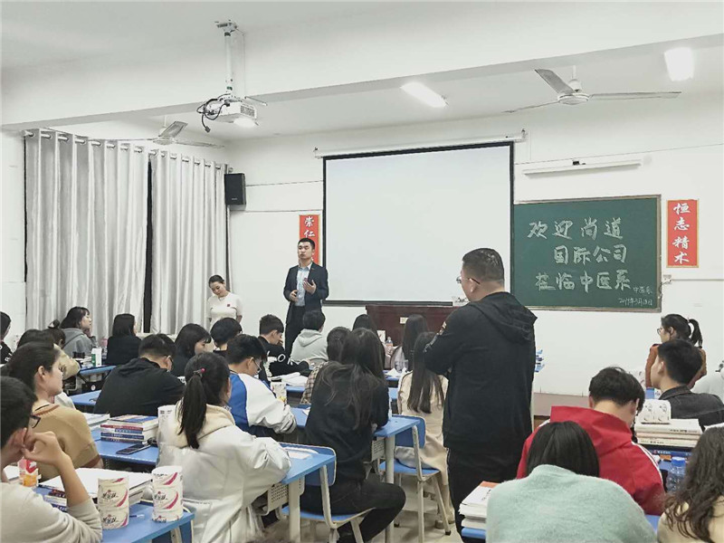 2019年3月18日晚自习,中医系特邀尚道国际公司前来招聘,尚道国际健康产业集团有限公司成立于2007年,是一家以传承弘扬中医养生文化为己任的集团化公司,有着丰富且成熟的市场及生产基地。