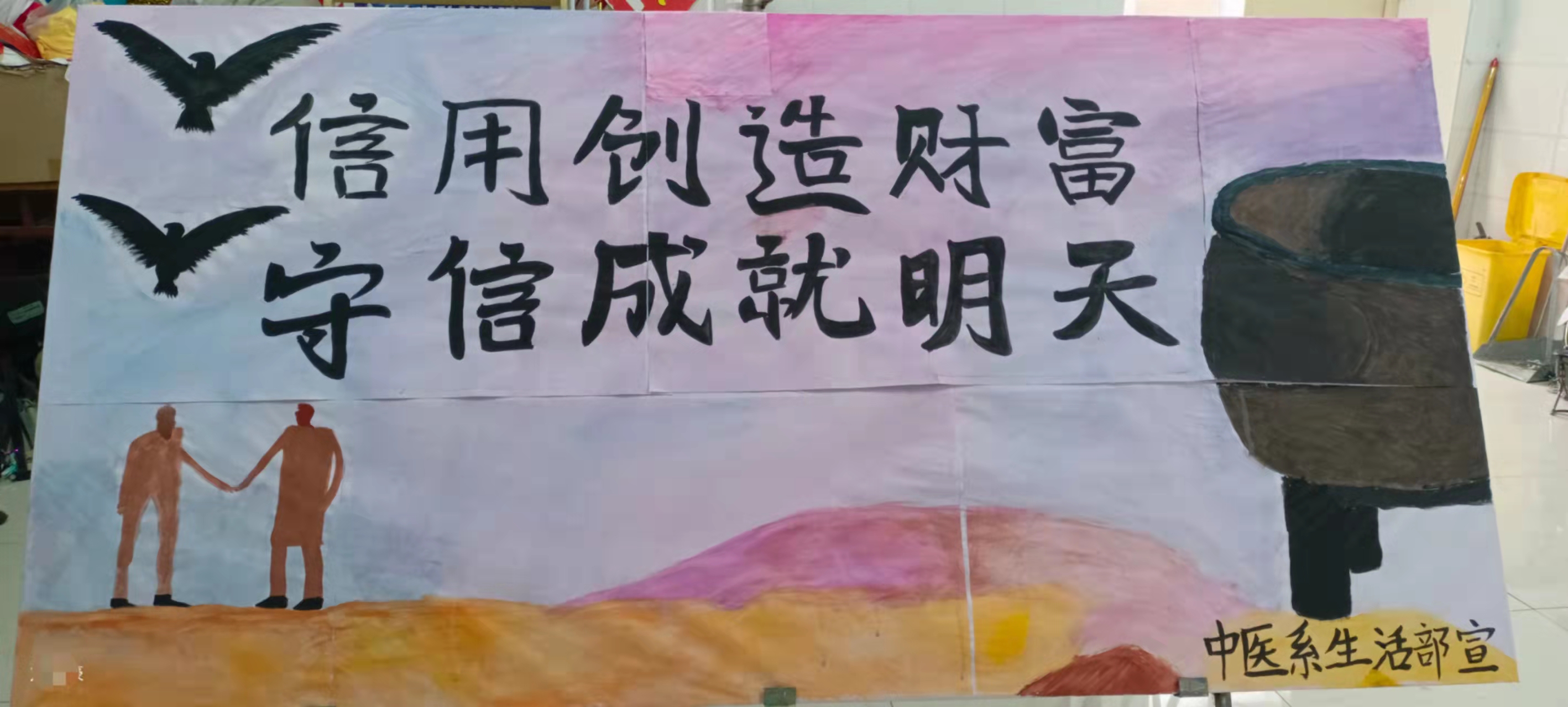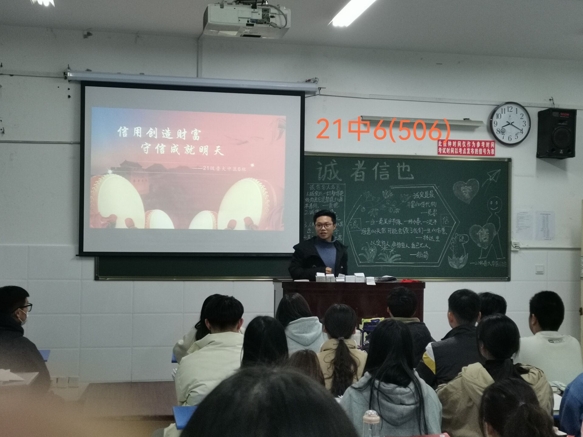 使各位同学们认识到诚信的重要性和培养同学们诚信的意识,并初步学会将诚信融入到日常生活中的每一件小事,从身边每件小事做起,真正做到诚实守信,中医系组织召开了“信用创造财富、守信成就明天”的班会活动