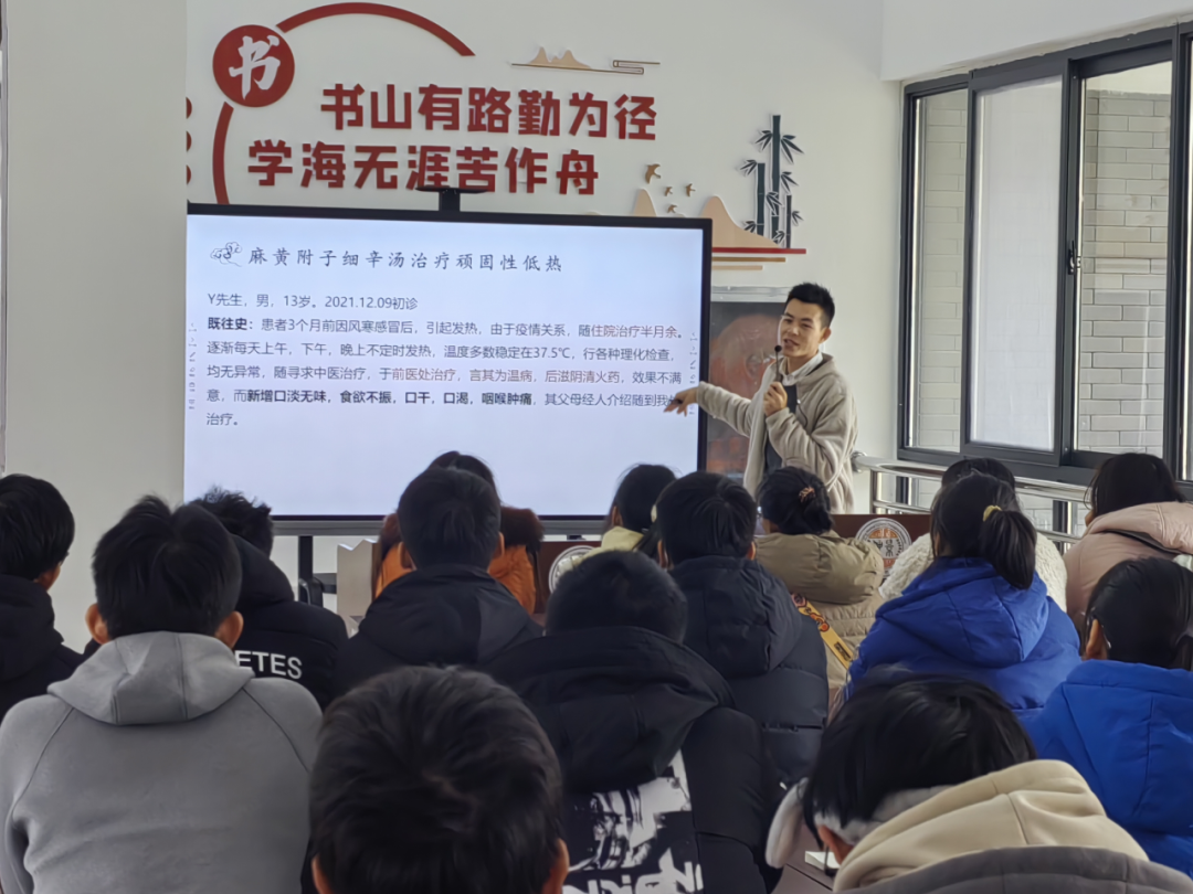 讲座在学生们热情的掌声中拉开序幕,张老师首先向大家抛出了一个问题“在你们眼中什么是中医?”,学生们积极踊跃地展开讨论并回答,同时张老师也为学生们讲述了自己对中医的看法以及自己独特的中医思维方式。张老师以“讲解病例”的方式介绍了麻黄附子细辛汤等中药的临床用途,强调了“不要空谈理论,实践出真知”、“反思无效医案,不为医案而医案”、“治疗贯穿全过程,不只是开方”等临床经验,为大家带来了一场酣畅淋漓的医学盛宴。