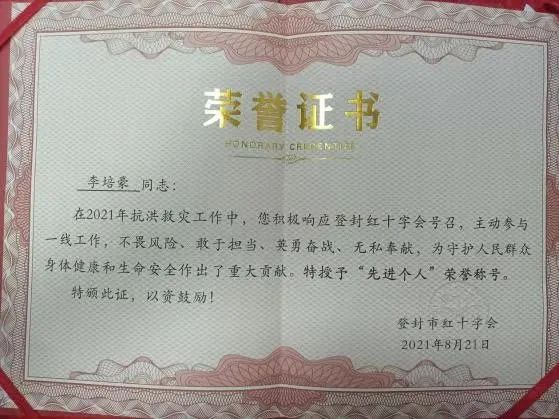 李培豪说:“水灾无情,人间有爱,面对滔滔洪水,我辈应当身先士卒,以实际行动践行初心使命!”