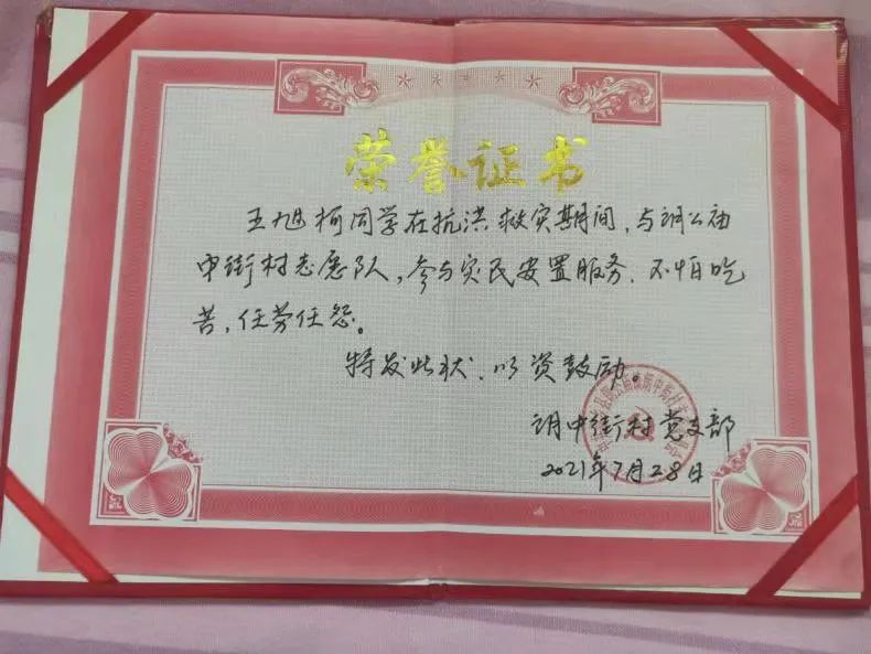 王旭柯是中医系2018级本科班学生,入党积极分子,始终以一名合格党员的标准要求自己,躬身社会实践,洪灾发生后,她义无反顾地报名参加了家乡的志愿服务活动。