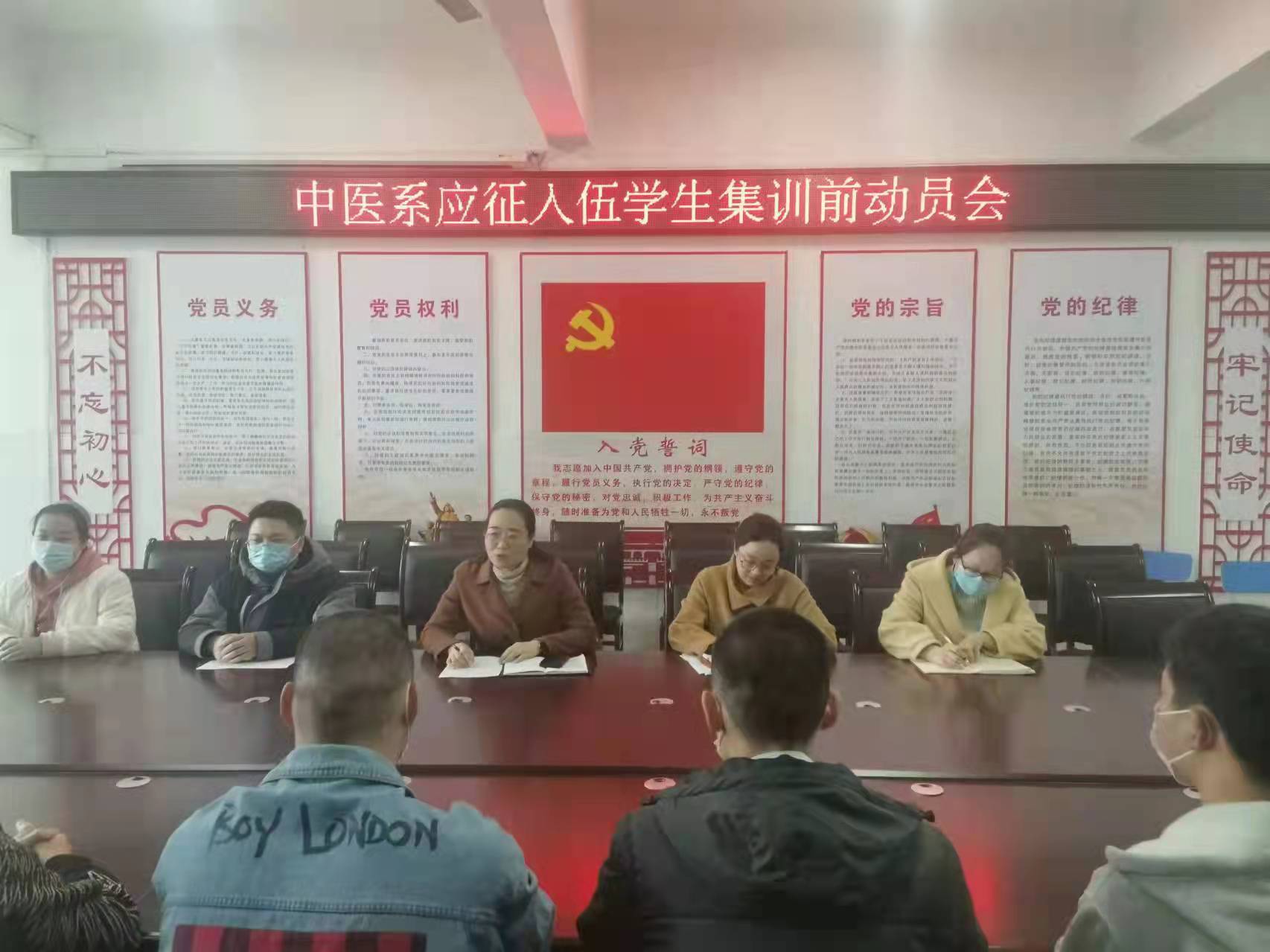 为进一步统一思想,明确任务,确保安全顺利圆满完预定新兵役前教育训练,3月3日中午,南阳医专中医系在党员办公室召开了2022年春季应征入伍学生集训前动员会,吹响了役前教育训练“集结号”,张明丽书记作动员讲话。