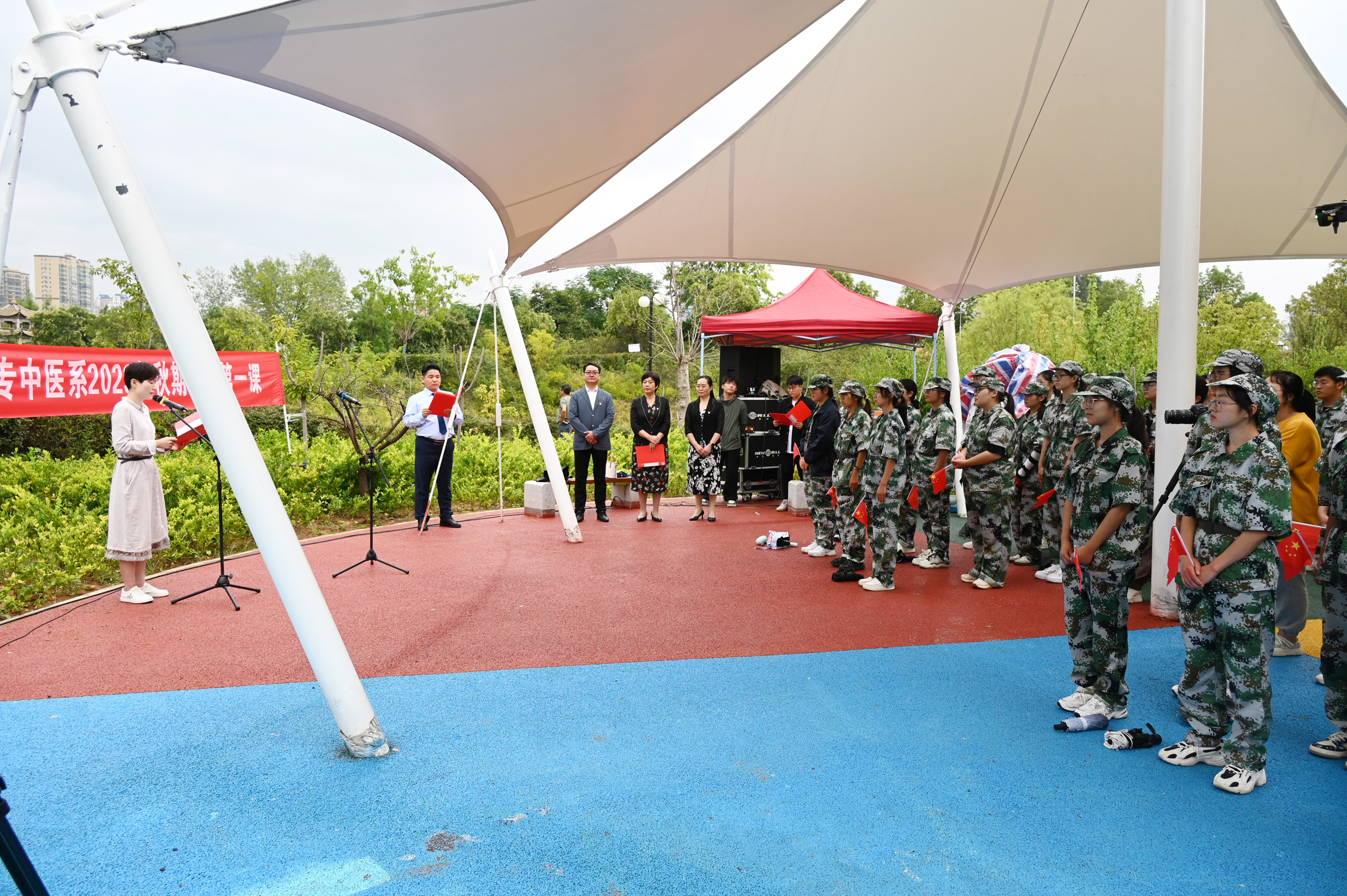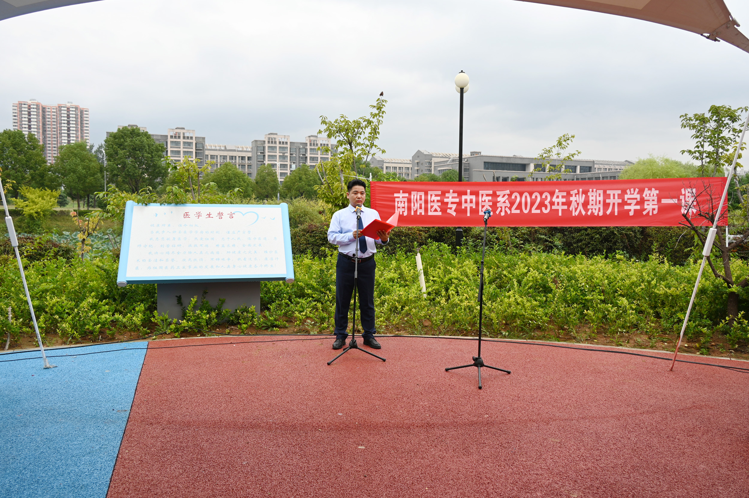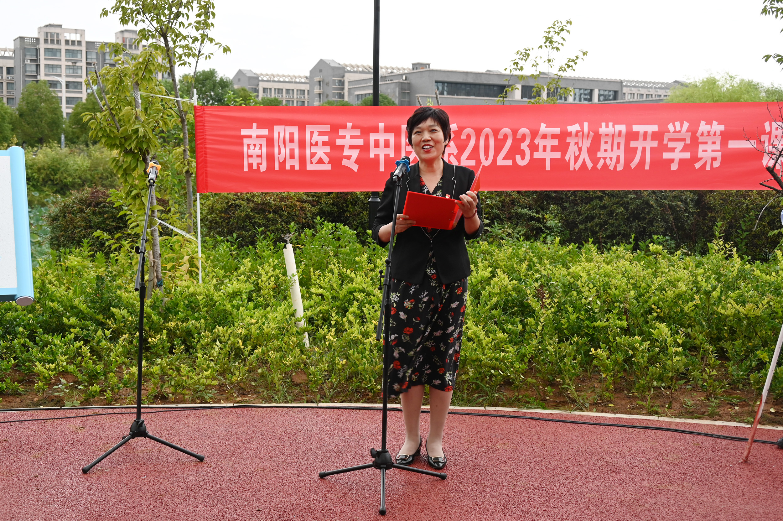 2023927日下午,南阳医专中医系2023年秋期开学第一课在仲景东区隆重举行。校长范真、宣传部部长李红普、中医系书记郭玉伟、主任张明丽与中医系全体师生齐聚仲景湖畔,同上一堂“沉浸式”思政大课。
